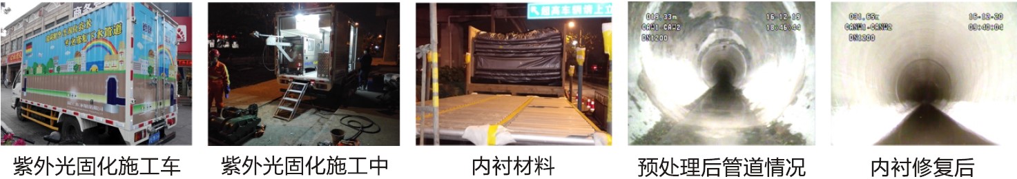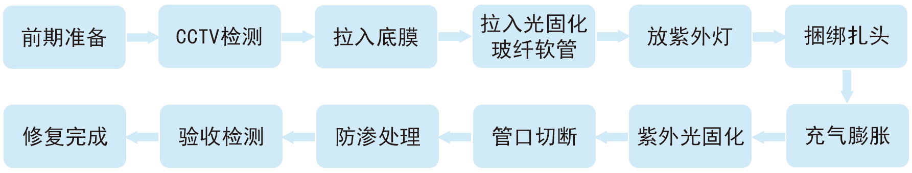 将用于整体内衬修复的UV玻璃纤维树脂软管,����� �������Ƴ������������ �������Ƴ������������ �������Ƴ������������ �������Ƴ������采用小型卷扬机拉入待修复的老旧管道后,用气压膨胀����� �������Ƴ������������ �������Ƴ������������ �������Ƴ������������ �������Ƴ�������使软管紧贴于待修复的老旧管道内壁。然后,采用紫����� �������Ƴ������������ �������Ƴ����������� �������Ƴ������������ �������Ƴ�������外光固化施工设备在自带CC����� �������Ƴ������������ �������Ƴ������������ �������Ƴ����������� �������Ƴ�������TV监视下实施照射固化,在管道内形成高强度����� �������Ƴ������������ �������Ƴ������������ �������Ƴ������������ �������Ƴ�������内衬新管的修复技术。